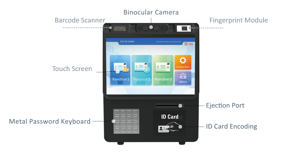 DST-85 یک راهکار all-in-one است که به‌طور ویژه برای چاپ کارت‌های on-demand در فضاهای محدود طراحی شده است. درون بدنه جمع‌وجور آن یک PC و یک پرینتر مدرن direct-to-card با ظرفیت 100 کارت قرار دارد. عملکردهای مختلف از طریق نمایشگر لمسی integrated قابل انتخاب هستند و DASCOM user interface می‌تواند برای سهولت کاربری، بر اساس نیازهای مشتری سفارشی‌سازی شود. به لطف camera و fingerprint sensor داخلی، امکان ادغام قابلیت‌های امنیتی مختلف فراهم است.